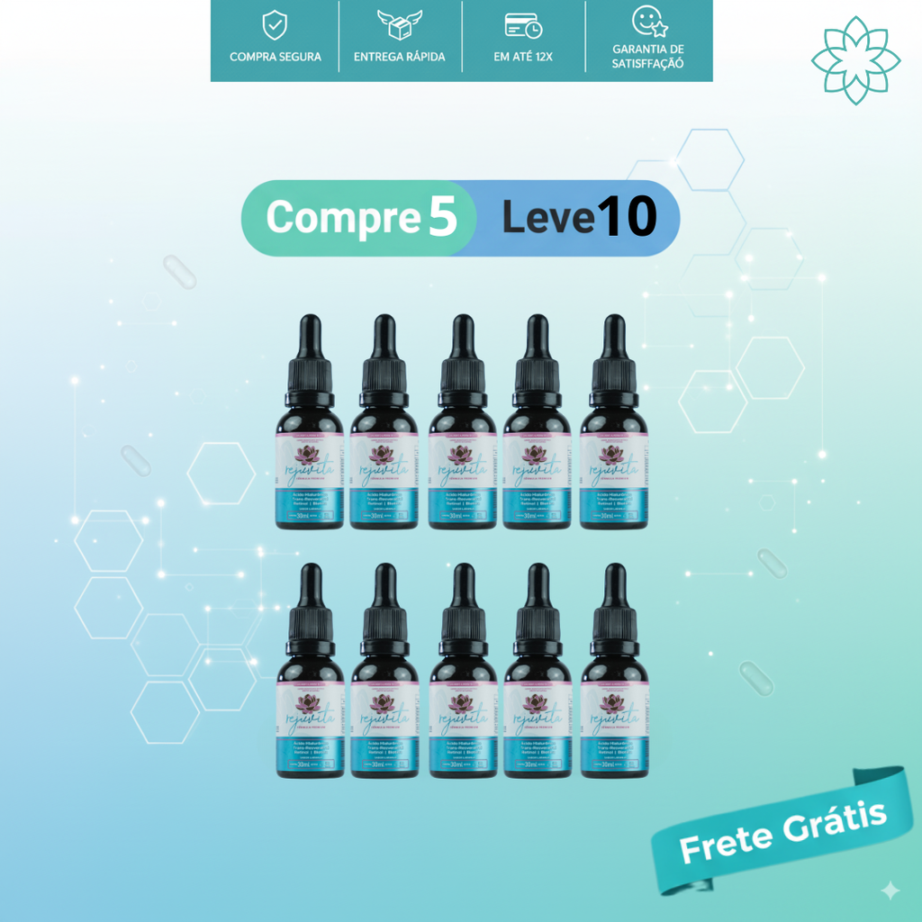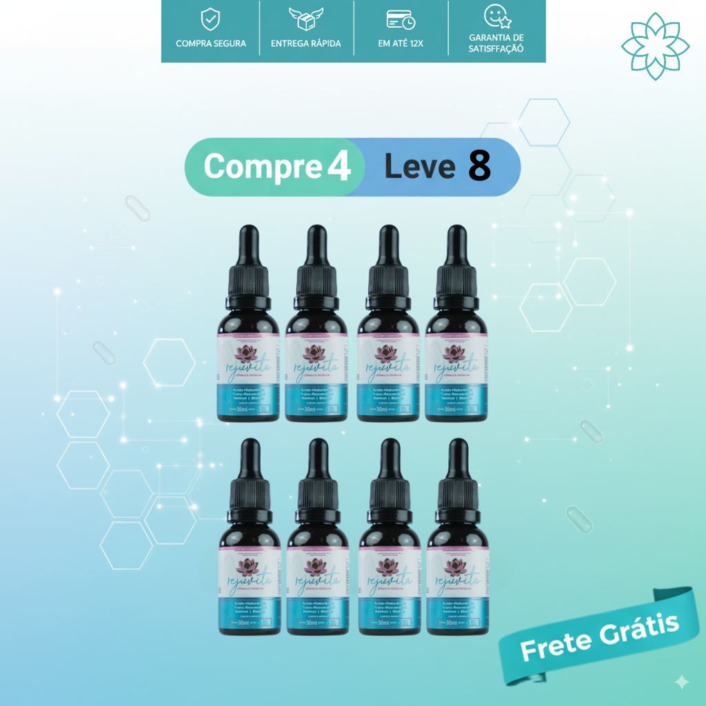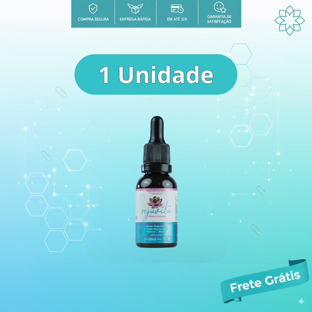 Rejuvita é um suplemento natural em gotas, desenvolvido para promover uma pele mais firme, iluminada, hidratada e com aparência visivelmente rejuvenescida. Sua fórmula combina nutrientes potentes reconhecidos por melhorar a elasticidade, uniformizar o tom e reduzir o aspecto de linhas finas. Simples, concentrado e fácil de incluir na rotina de beleza.